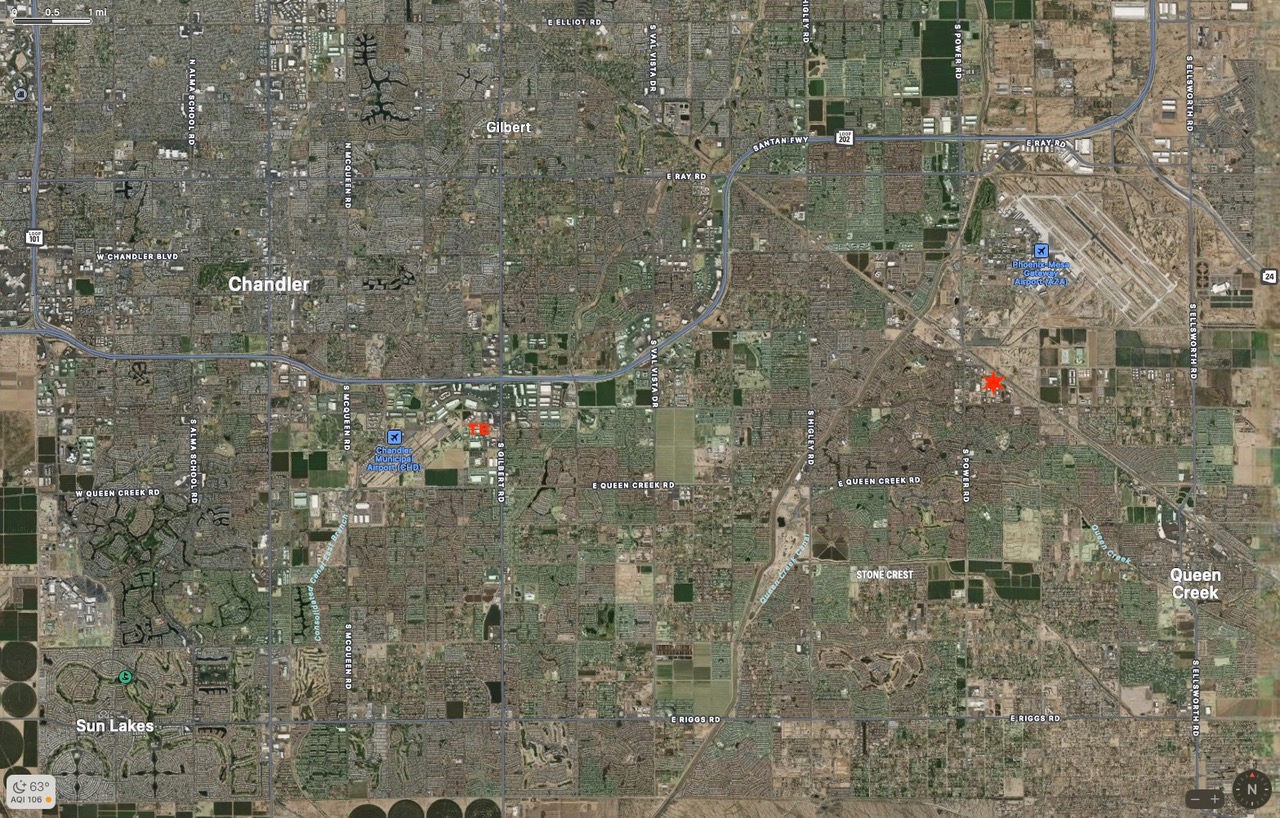 Situated at 18478 S. 187th Place, the property provides seamless access to Ellsworth Road, State Route 24, and the Loop 202 Santan Freeway, connecting owners directly to Scottsdale, Tempe, and Phoenix Sky Harbor International Airport within 35–40 minutes. The Phoenix-Mesa Gateway Airport is less than 20 minutes away, providing convenience for private and commercial travel.