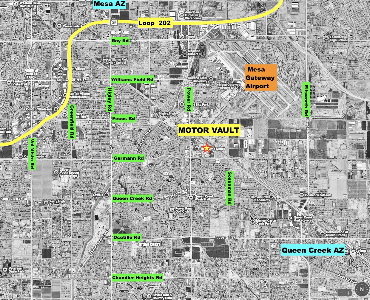 Surrounded by wide-open desert views and expanding luxury neighborhoods, Motor Vault Queen Creek offers the perfect balance of privacy, accessibility, and performance lifestyle. Its strategic location combines the freedom of Arizona’s adventure terrain with direct connections to major freeways, airports, and lake destinations—making it an ideal home base for collectors and thrill-seekers who live life in motion.